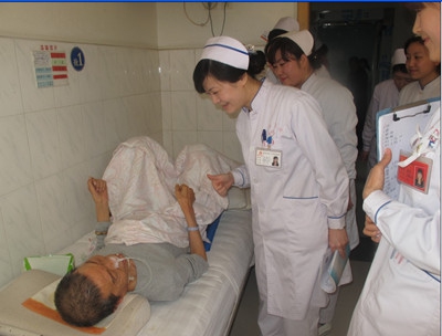 为了能够让病人住院期间得到最好的照顾,石海花护士长不仅自己带头为病人送去温暖,还特别叮嘱护士要做好做细护理工作,随时注意观察病人的生病体征,气管的顺畅,防止管套移动、堵塞、脱出,有问题及时与家属、医生沟通。协助病人家属做好口腔、湿化、吸痰、鼻饲等护理工作,除此之外,护士定时为患者翻身,防止压疮。患者肌萎缩严重,特别防止病人因其他人为原因再次摔伤导致身体的其他部位受伤。并详细告知患者和患者家属呼叫器位置,如有意外及时按铃呼救。为保证患者安全与方便,特别为该患者预约好全程陪检。使患者和家属感到医护人员无微不至的关怀。