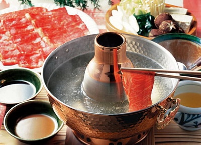 嫩嫩的羊肉买回来一定要放在外面冻上,有一定硬度拿回来就好薄薄地切成片儿,码在盘子里。吃的时候,火锅子里放入开水,再把点着的木炭放入灶膛,上面加个小烟筒。很快水就翻滚起来,早就围了一圈的大人小孩儿就会开动。每次只能用筷子夹起一片肉,在滚水里来回涮几回,肉的红色消失就可以吃了。