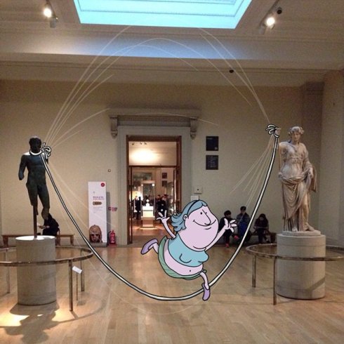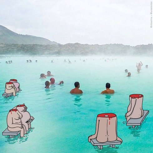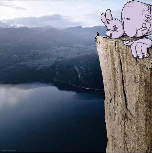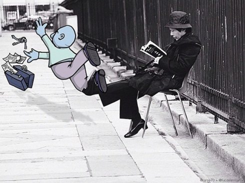 目前居住在伦敦的巴西插画家LucasLevitan将自己的这一系列作品称之为「照片入侵(PhotoInvasion)」。他会选取Instagram用户的一些私人照片来进行创作,在丰富想像力的保驾护航下,用契合照片场景的卡通人物毫无违和感的侵入图片中与照片中的人、物或场景互动,从而完全改变原有照片的风格,让它们变得更搞笑、更富趣味。