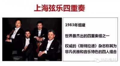 上海弦乐四重奏,1983年组建,世界最杰出的四重奏组之一,权威的《斯特拉德》杂志称其为非凡优雅和音乐特色的四人组合。