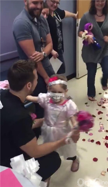 妈妈把女儿的小心愿告诉了Matt,Matt欣然同意,并且表示只要能让Abby开心,愿意在医院办一个婚礼。于是家人和医院的工作人员给他们在医院里举办了一个小小的婚礼。▼