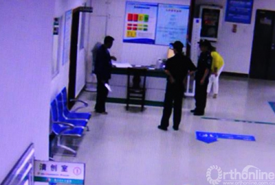 8月22日,从三亚市人民医院监控视频上拍摄的嫌疑人进入诊室的画面。(三亚新闻网记者沙晓峰摄)