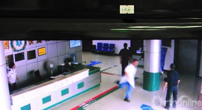 8月22日,从三亚市人民医院监控视频上拍摄的受伤的李医生跑出诊室的画面。(三亚新闻网记者沙晓峰摄)