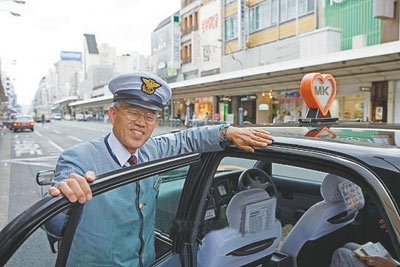 在日本旅行免不了坐出租车。和家人一起外出吃饭,定了一家当地特色的餐馆。可是谁也没有去过,只能坐出租车一起去。