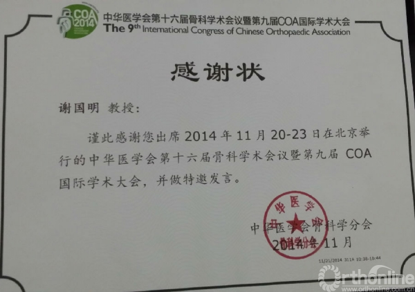 2015-11-16 文章来源:上海市第六人民医院骨科 谢国明 我要说