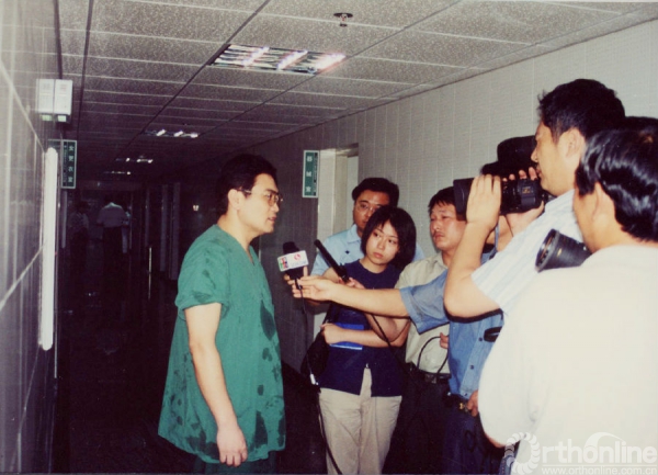 2002年邱勇教授行中国首例胸腔镜下脊柱侧凸手术后接受采访
