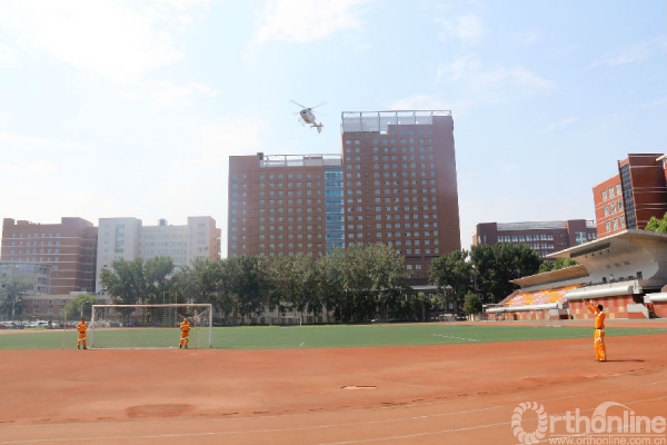 由于我国空中救援使用尚不广泛,大部分国内大型医院暂时没有自己的直升机起降平台。据了解,999急救中心对于停机坪的要求是30米*30米见方空地即可。延庆区医院行政楼前的空地刚好符合飞机的起降要求。北医三院目前没有专门的停机坪,但其使用航空医疗的相对优势在于医院后方可以作为非常良好直升机起降平台的北京大学医学部操场,且操场距离三院外科楼直线距离仅50米,基本上可以做到零时间差空中-地面对接。