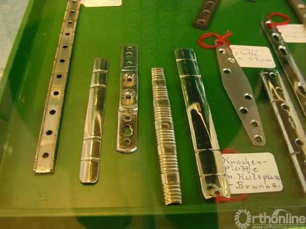 历史走到这里,已是二战硝烟散去的1950年代,各种内固定手术、各种围手术期治疗理念、各种固定器械和方法,已如雨后春笋般在大洋两端的欧美各处发生、以至于有了一些野蛮生长的态势。每个国家、乃至不同地区、不同医院、不同派别的医生采用自己的一套方法、自己发明的器械来治疗骨折,治疗结果千差万别,彼此间也没有一个共同认可的标准或规范,用以比较和交流治疗上的观点。下图是当时临床上所用的各种骨折内固定器械,完全没有定规。很显然,这种局面即将对新生不久的骨科治疗带来前进的阻碍。