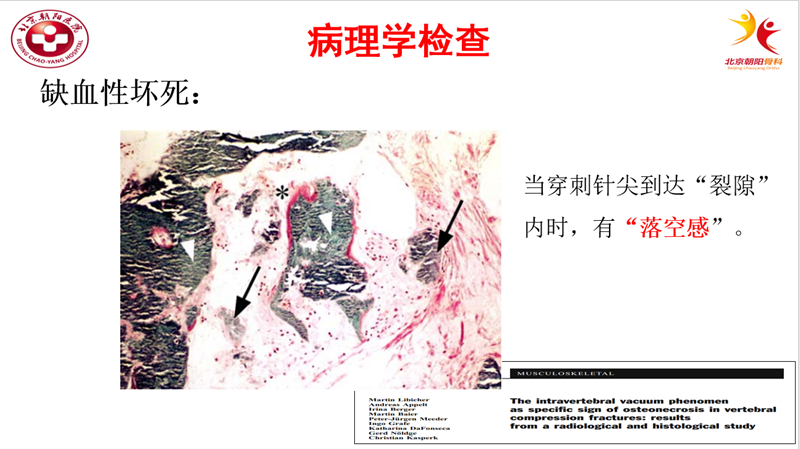 当椎体裂隙周围坏死的骨组织逐渐增加,发生硬化,这会让术者在手术中穿刺到该部位时,常感觉阻力非常大,当穿刺针尖到达“裂隙”内时,有“落空感”。