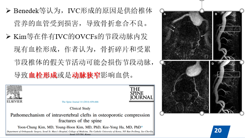 ①严重的OVCFs容易出现IVC现象:IVC的发生率与大于50%的椎体塌陷呈明显的相关性;