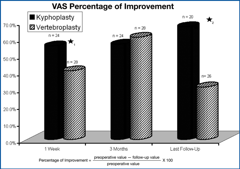 a.Kumar认为:PVP与PKP都能明显缓解疼痛、改善功能,提高患者生活质量,PKP的远期结果优于PVP