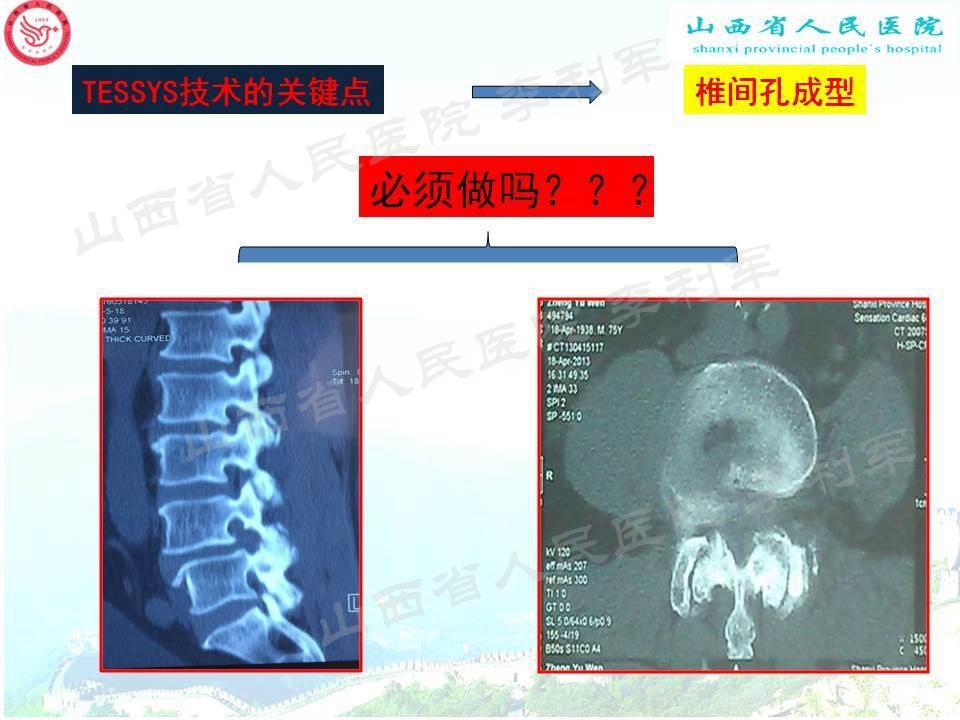 椎间孔镜经椎间孔入路(PTED)目前主流技术是TESSYS技术,椎间孔成型是TESSYS技术的关键步骤,是否每个病例都需要成型?成型多大范围是标准?彻底减压和关节突保护的平衡问题一直是临床医生争论的焦点问题。