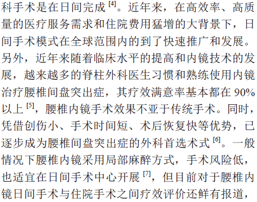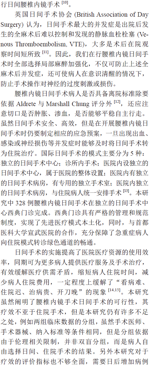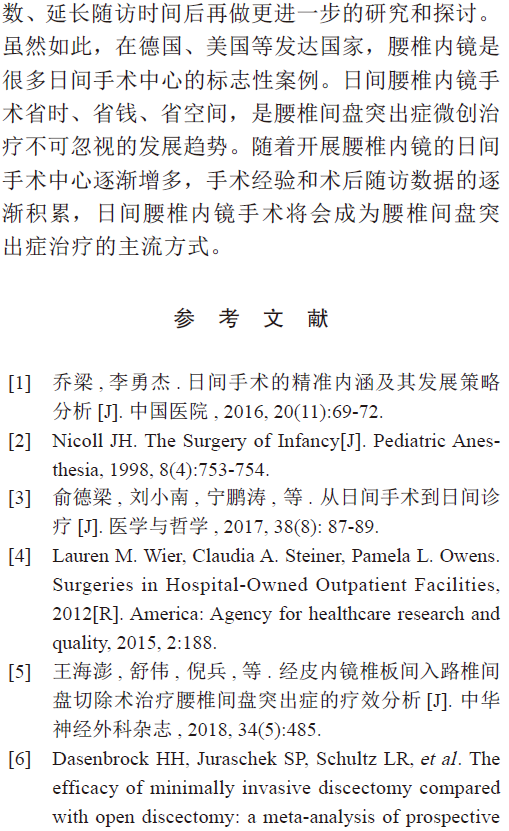 结论:腰椎内镜手术的日间手术模式安全、高效。