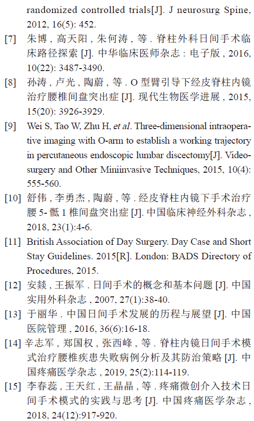 关键词:腰椎内镜;日间手术。