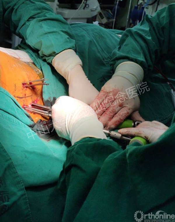图5:侧卧位经皮椎弓根螺钉置入