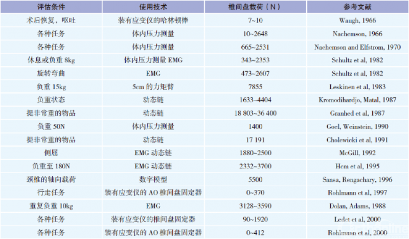 各种状态下腰椎椎间盘的载荷受力情况