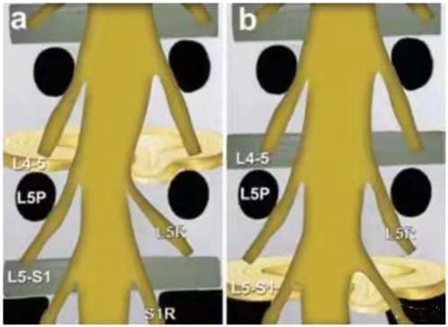 L1-L5易出现神经根肩上型挤压。L5/S1易出现腋下型挤压。在探查神经根周围是否有残余间盘时需留意。