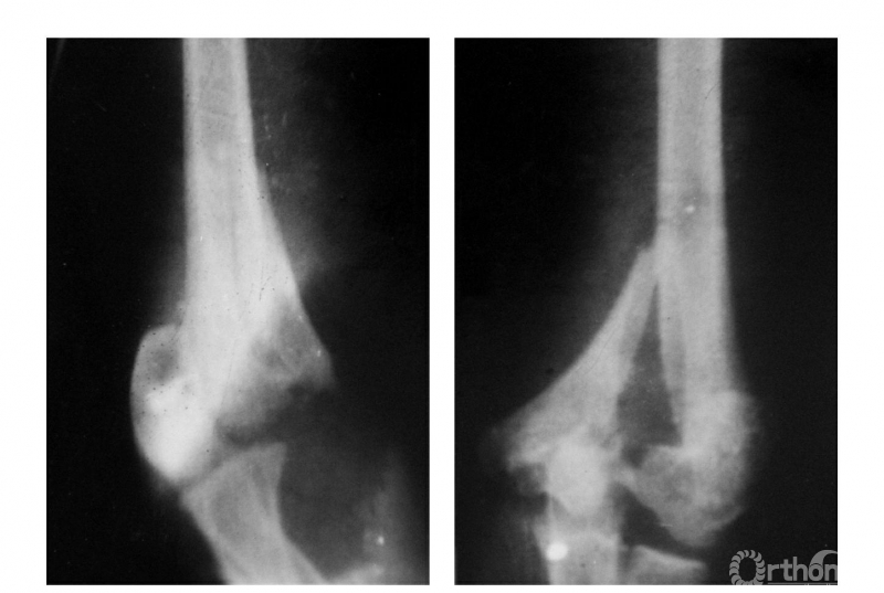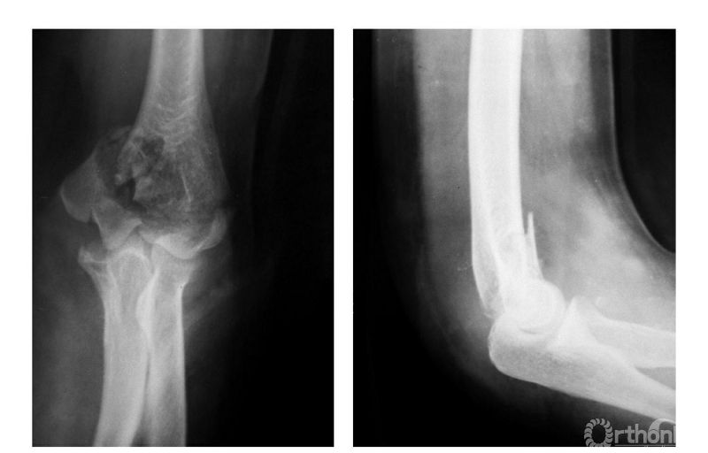 肱骨髁间骨折为肘部的严重损失病之一,其骨折线至少由两部分组成,以及通过髁间的碎折。