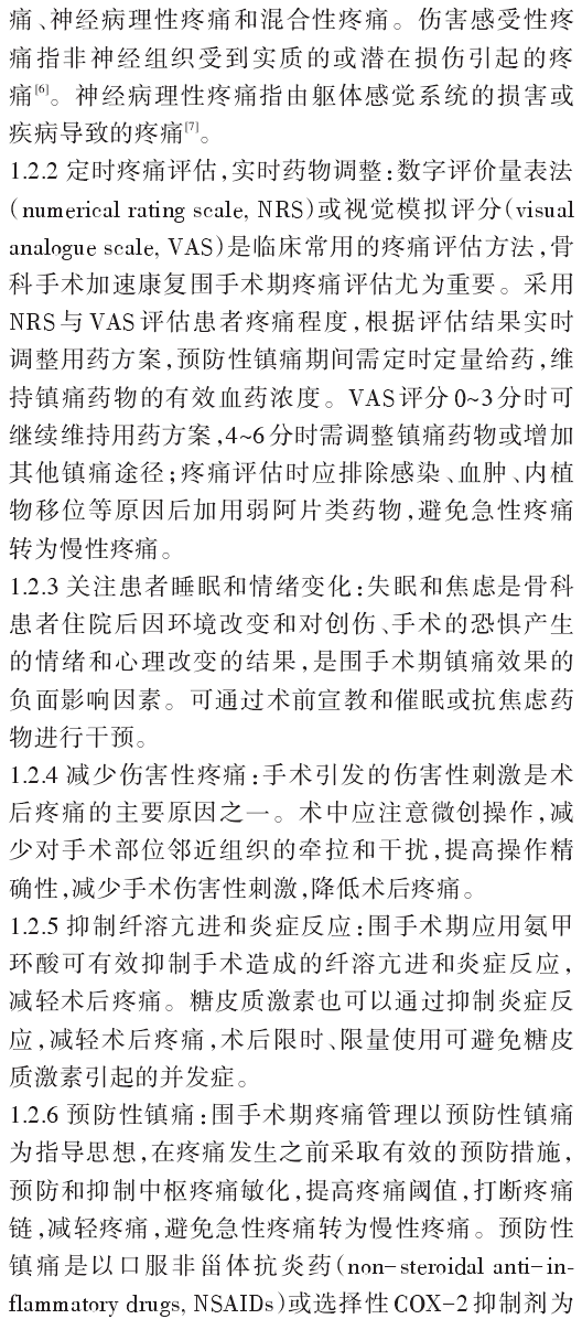 【摘要】骨科手术围手术期疼痛控制直接影响患者术后康复效果与医疗质量。应用已证实有效的方法降低围手术期疼痛可减少疼痛的相关并发症,加速患者术后康复,提高患者满意度。