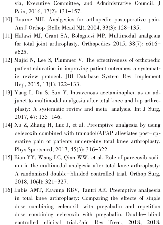 通过查阅文献,中国康复技术转化及发展促进会、中国研究型医院学会、中国医疗保健国际交流促进会和白求恩公益基金会组织专家,基于国家卫生健康委员会公益性行业科研专项《关节置换术安全性与效果评价》项目组数据库大样本数据分析,遵循循证医学原则,经全国专家反复讨论和通讯修改,针对骨科围手术期疼痛管理形成本指南,供广大骨科医师在临床工作中参考。
