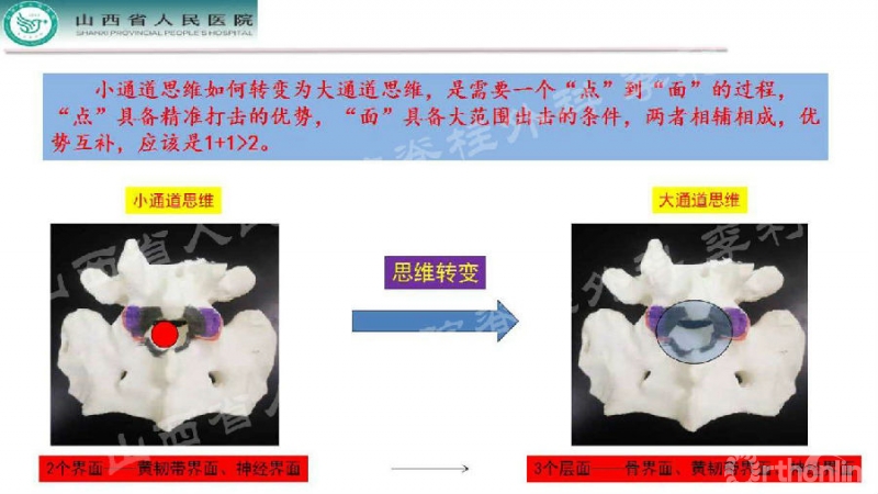 随着脊柱内镜技术的快速发展,目前已经可以应用于大多数腰椎退变性疾病(DDD)的手术治疗,已经从DDD阶梯治疗单纯减压的初级阶段进入到了镜下融合的终极手术阶段,已经可以很好的完整复制一台腰椎开放融合手术,同时随着脊柱内镜技术的进一步扩展,逐步应用于颈椎和胸椎的减压,并取得了不错的临床疗效,这将预示着全脊柱内镜时代的到来。