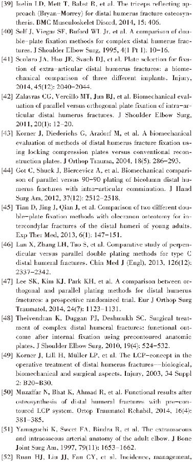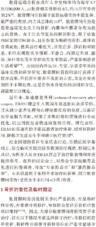 识,为医务人员在治疗此类骨折时提供指导。该共识适用于需采用手术治疗的新鲜、闭合肱骨髁间骨折患者。