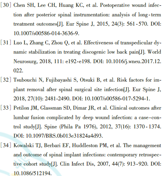 腰椎经椎弓根动态固定术后感染的临床特征及治疗策略