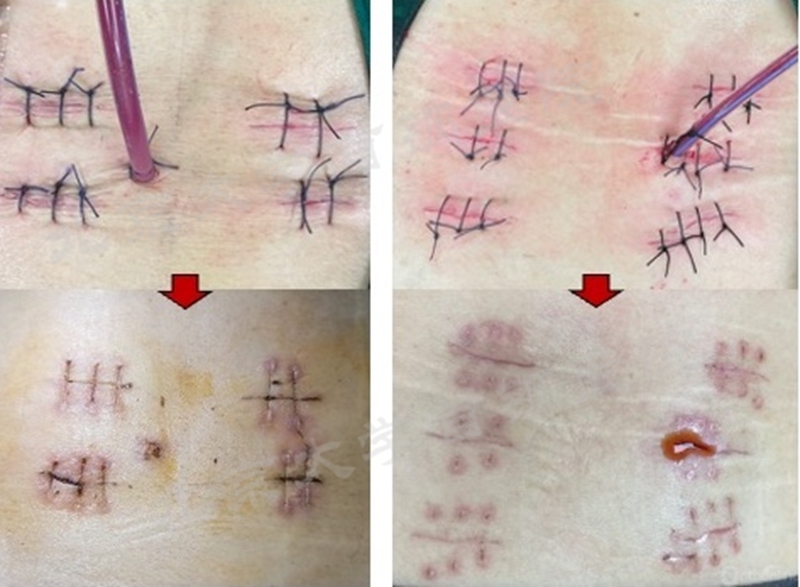 图5 我中心利用Quarterback切口放置引流管可以减少伤口愈合不佳