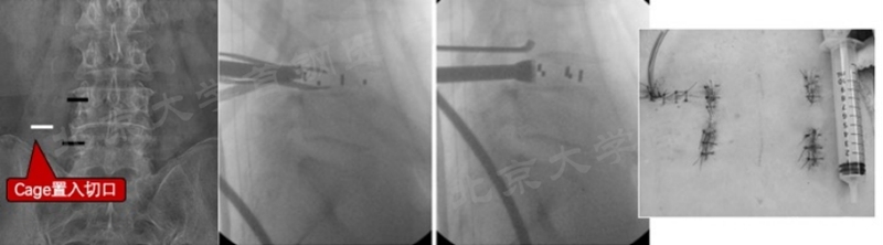 图9 通过Zhang切口置入对侧Cage过程(张伟教授提供)