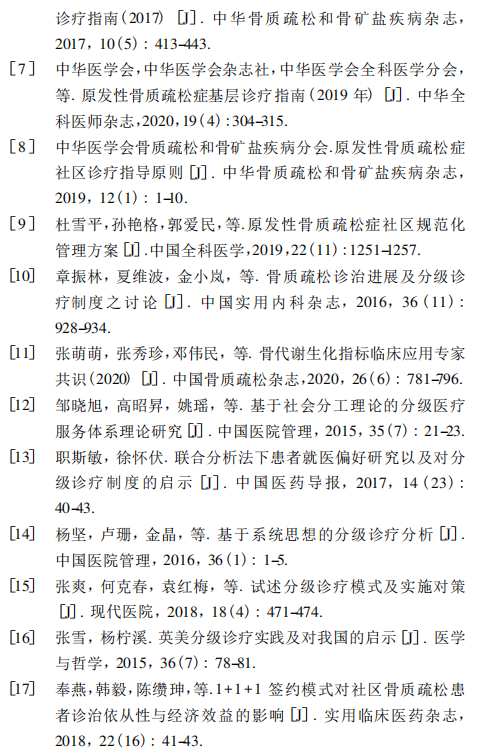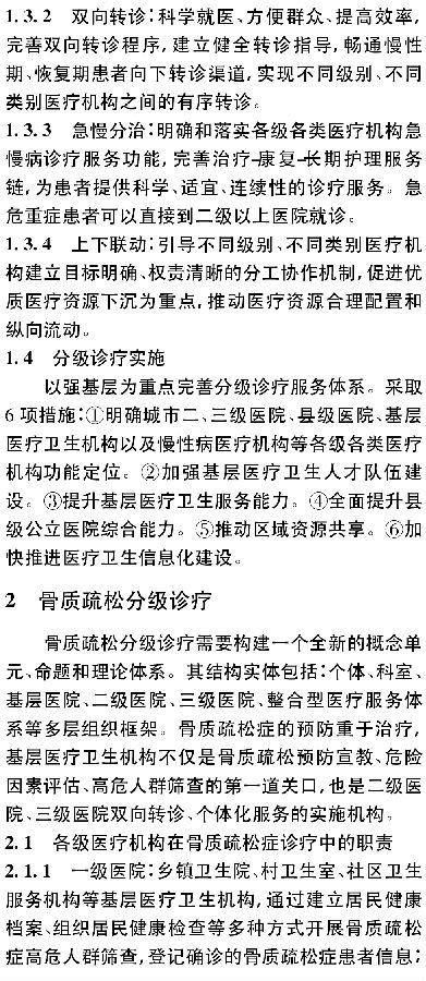分级诊疗;指导意见;骨质疏松分级诊疗;双向转诊;诊断与鉴别诊断;专家共识