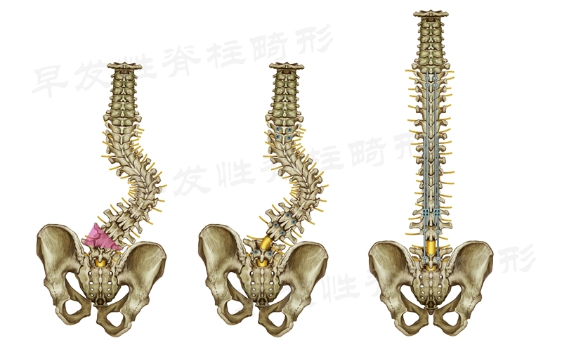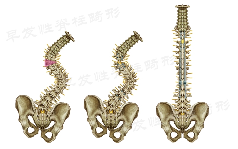 通常情况下,需要在截骨端双侧进行内固定以及融合。如凹侧椎弓根发育差,可考虑仅在凸侧进行内固定以及融合,但要警惕这种情况下可能出现的不稳定以及截骨端不愈合,给后续撑开治疗带来危险。