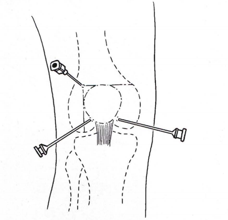 关节穿剌术主要应用千四肢关节,是骨科临床医师必须掌握的基本临床操作技术之一。四肢关节可能因为局部或者全身因素,出现关节腔内积液肿胀。此时,为了明确关节腔内积液性质,为床医师的诊断治疗提供依据,就需要通过关节穿剌术,将关节腔内的积液抽出,进行必要的检查。同时,如果关节腔内积液明显,通过关节穿刺术抽出关节腔内积液,也可以达到减压止痛的目的。另外,某些关节内疾病需要向关节腔内注射药物,也需要通过关节穿刺术来完成。