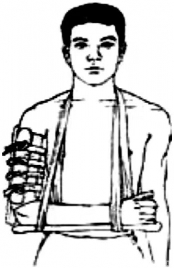 常用的闭合治疗方法有悬垂石膏托外固定(图2)、小夹板外固定(图3)及其他。