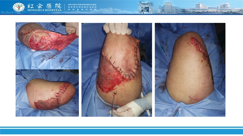 4. 软组织不缺损的胫骨骨外露,采取一些小的方法或者技巧,避免人为、医源性造成皮缘坏死,导致骨外露的不良后果;