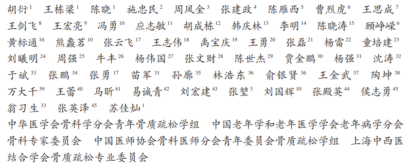 来源:中华创伤杂志、中华医学会骨科学分会青年骨质疏松学组、中国老年学和老年医学学会老年病学分会骨科专家委员会、中国医师协会骨科医师分会青年委员会骨质疏松学组、上海中西医结合学会骨质疏松专业委员会