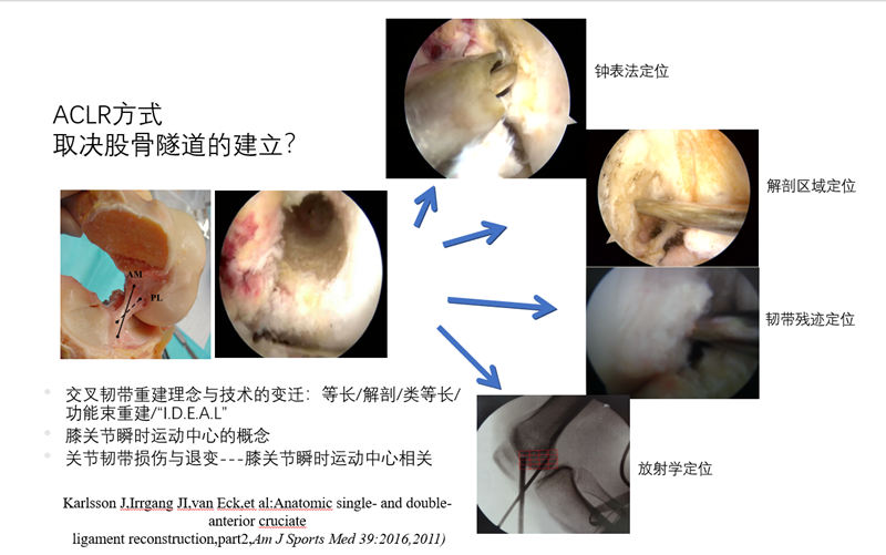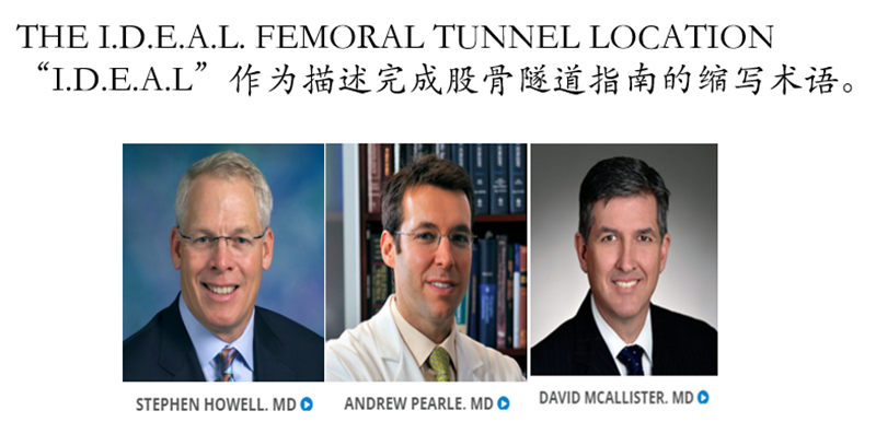 交叉韧带重建理念与技术的变迁:等长-解剖-类等长-功能束重建-“I.D.E.A.L”。三位外科医生在ACL重建领域加起来拥有70年的临床和研究经验。作为一个团队,他们对大量ACL重建解剖学,组织学,生物力学和临床数据进行了全面研究,并推荐使用首字母缩略词“I.D.E.A.L”作为描述完成股骨隧道指南的缩写术语。