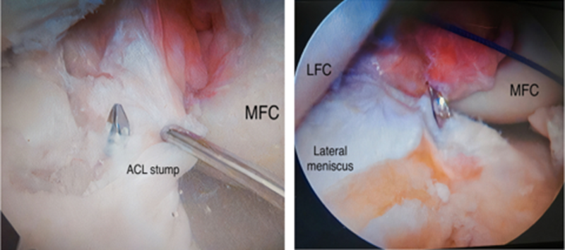 残根:是指损伤后 ACL 断端吸收或缺如,有的在胫骨止点留有ACL的残迹。