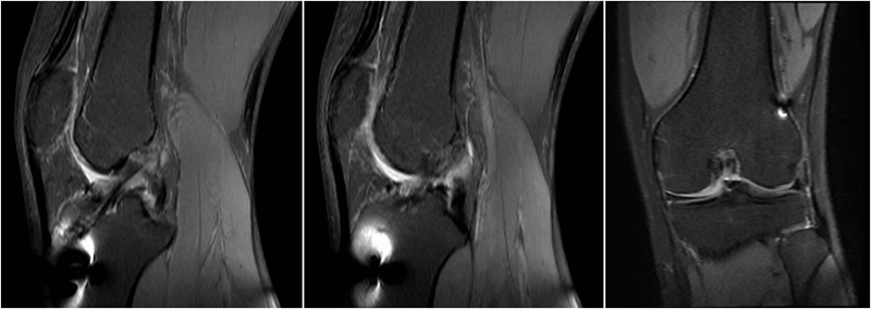 诊断:1.左膝前交叉韧带损伤;2.左膝外侧半月板损伤合并囊肿。