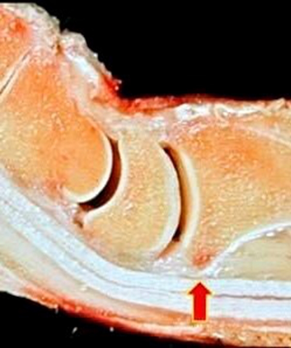中柱的骨折常导致掌侧缘、背侧壁、尺背侧部分及中间游离骨块;掌侧缘骨块及尺背侧部分骨块常累及大部分月骨关节面和全部的乙状切迹,是两个关键骨块。