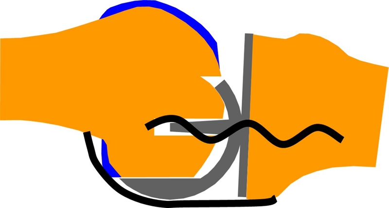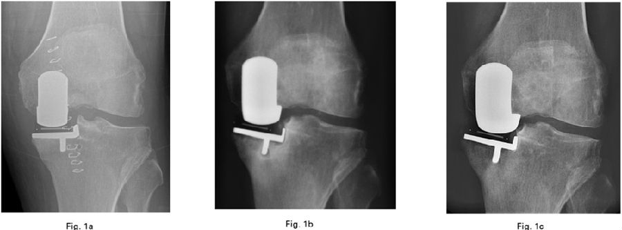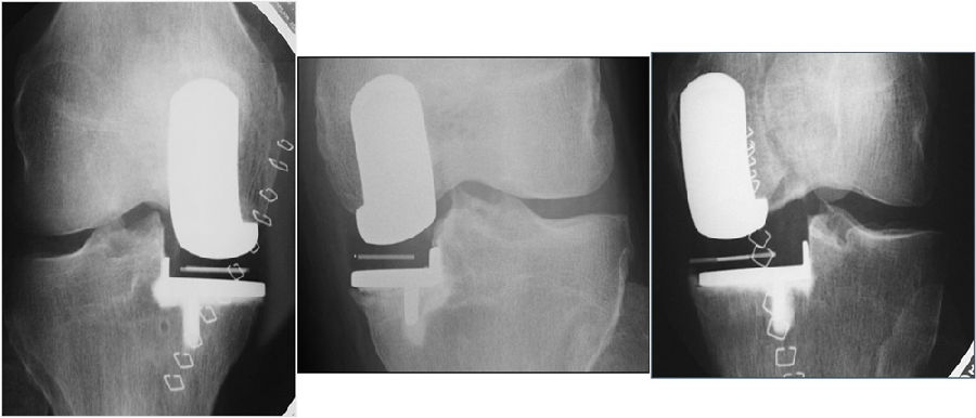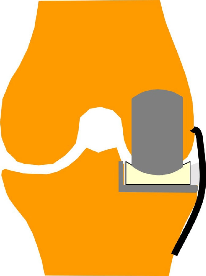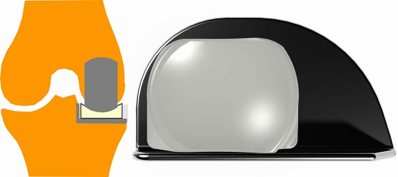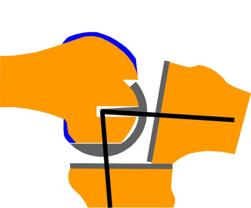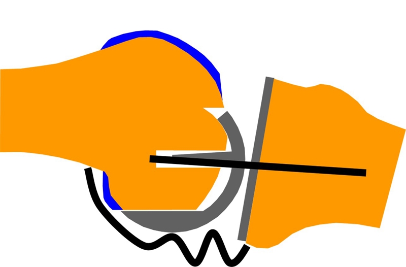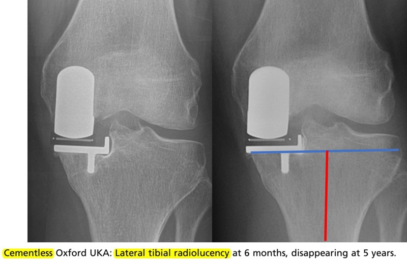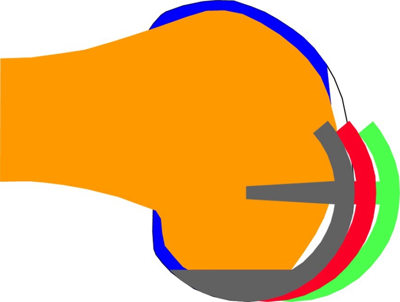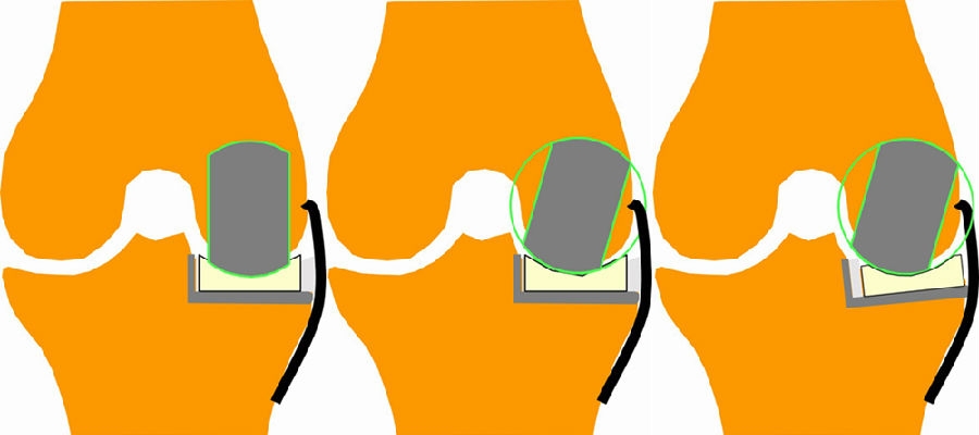 不取决于假体组件的对线情况(cf TKR)。假体组件为球形。允许出现少许对线不良。