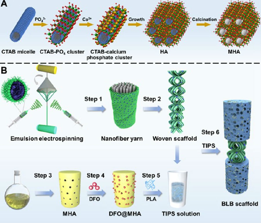 图2 通过静电纺丝技术和热诱导相分离制备BLB支架