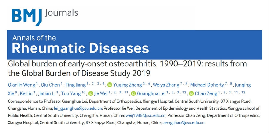 雷光华/曾超/魏捷团队在《Annals ofthe Rheumatic Diseases》报道全球早发骨关节炎疾病负担